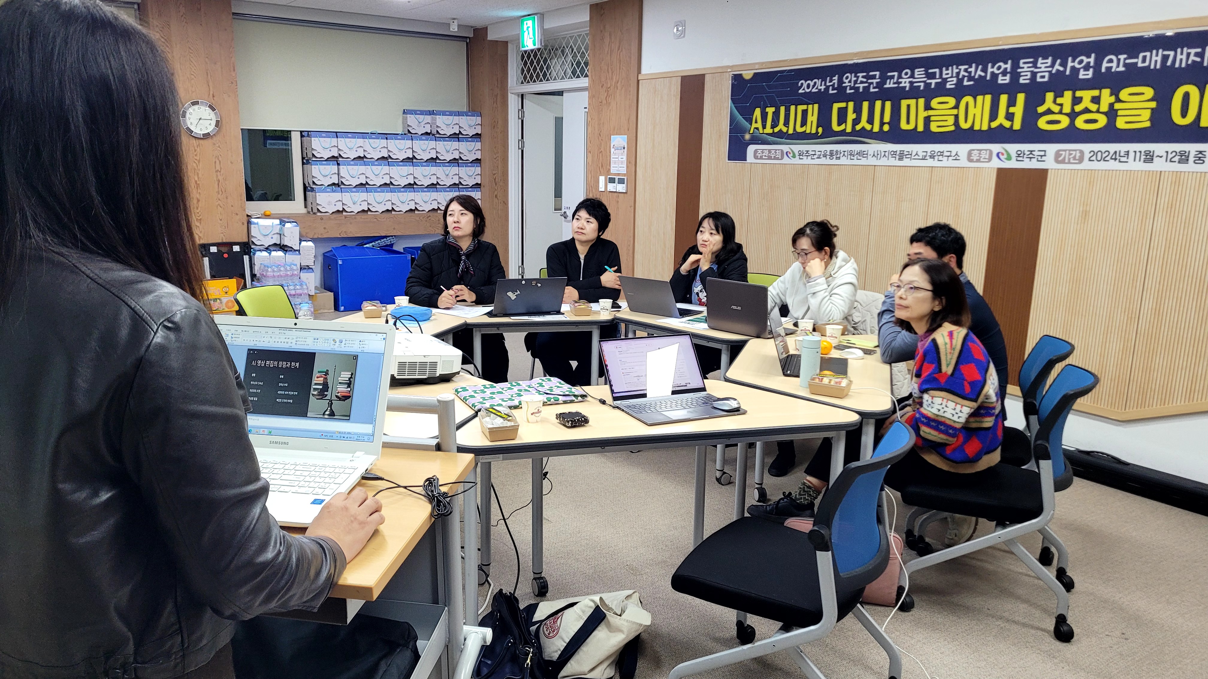 완주군교육통합지원센터에서 주최하는 2024 완주군 교육발전특구 지역돌봄 특화사업의 일환으로 AI-매개자 양성 교육이 현재 활발히 진행되고 있다. 이 프로그램은 완주군의 주민, 학부모, 교육공동체, 그리고 마을 기관을 대상으로 AI시대에 마을콘텐츠를 기반으로하는 교육실습과정이다.